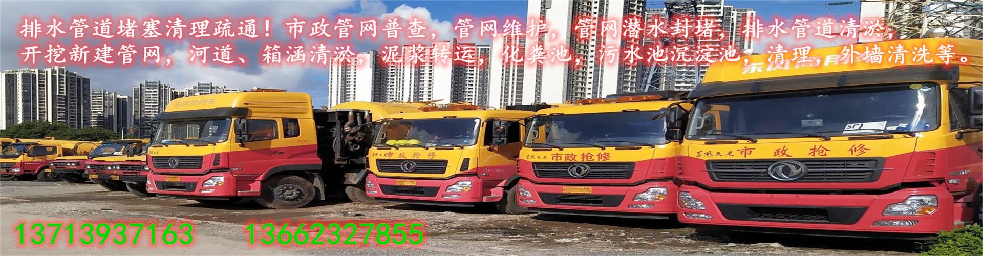 專業服務于排水排污管道清淤疏通、市政管道清淤、河道、魚塘、箱涵清淤/化糞池、隔油池、沉淀池、污水池清理。外墻清洗,管道開挖或非開挖修復,泥漿清運